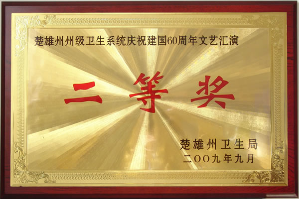 2009年楚雄州卫生局授予“楚雄州州级卫生系统庆祝建国60周年文艺