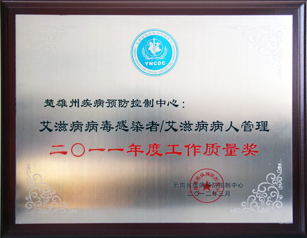 2012年3月云南省疾控中心授予艾滋病病毒感染及病人管理工作质量