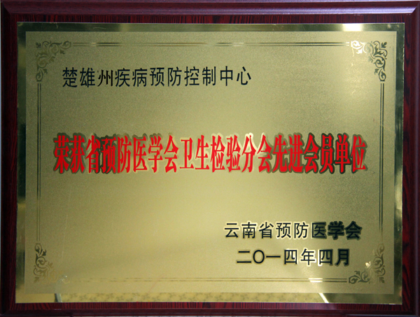 2014年4月荣获省中心预防医学会授予卫生检验分会先进单位