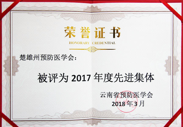 2018年3月云南省预防医学会授予全省健康科普大赛优秀组织奖